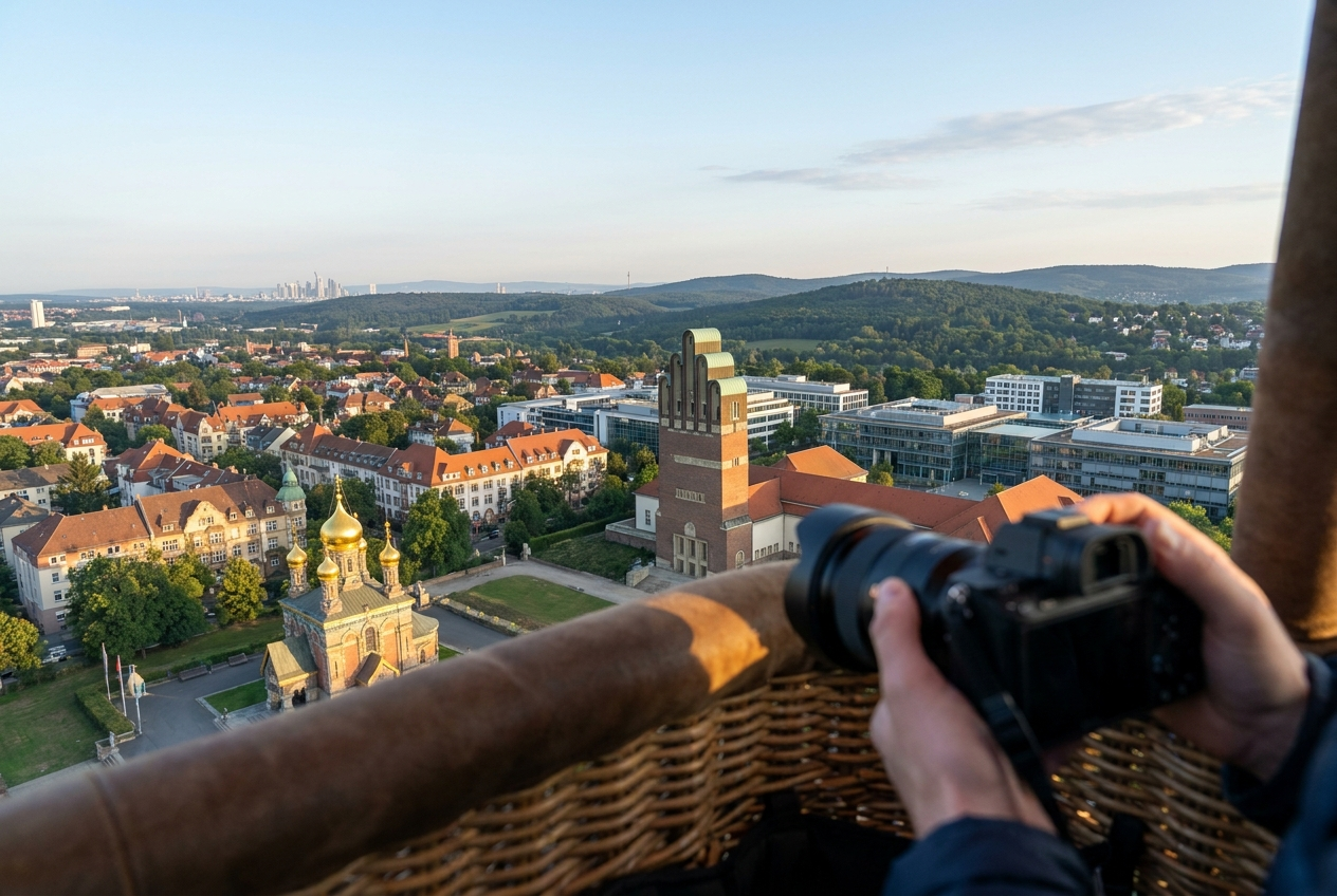 Ja, das ist möglich. Du kannst einen exklusiven Ballonkorb mieten, was besonders für Heiratsanträge über den Jugendstil-Dächern der Mathildenhöhe oder für ganz persönliche Jubiläen beliebt ist.