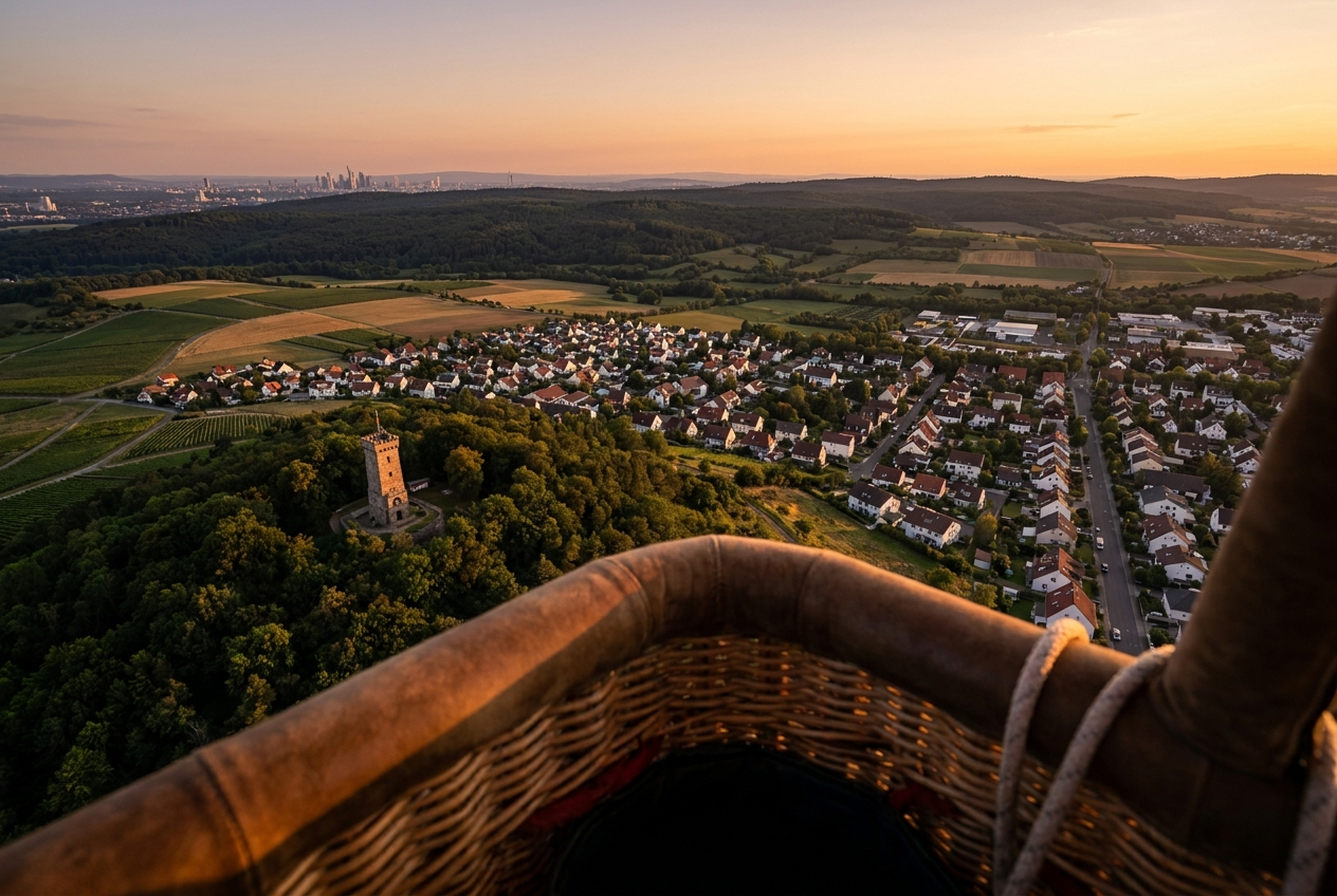 Es gibt Erlebnisse, die weit über den Augenblick hinausreichen und als goldene Erinnerung bleiben. Bei einer Ballonfahrt in Dietzenbach lässt du die Hektik des Alltags unter dir und tauchst ein in die vollkommene Ruhe der hessischen Lüfte. Wir von basenio wissen: Die Welt sieht von oben friedlicher aus. Wenn der Aussichtsturm auf dem Wingertsberg kleiner wird und sich das Panorama zwischen der Frankfurter Skyline und den sanften Hügeln des Spessarts vor dir ausbreitet, spürst du pure Leichtigkeit.
